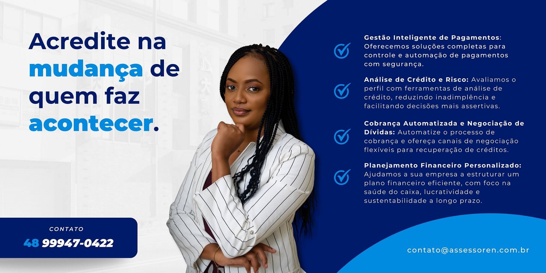 Na Assessoren, nosso compromisso é tornar o processo de solicitação de empréstimos mais simples, rápido e seguro. Atuamos como ponte entre você e os principais bancos e instituições financeiras do país, oferecendo assessoria personalizada para encontrar a melhor opção de crédito de acordo com o seu perfil e necessidade.